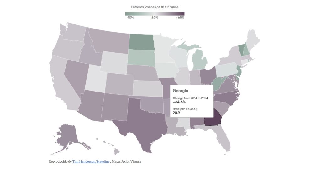 Las tasas de suicidio entre adultos jóvenes aumentan en casi todo el país