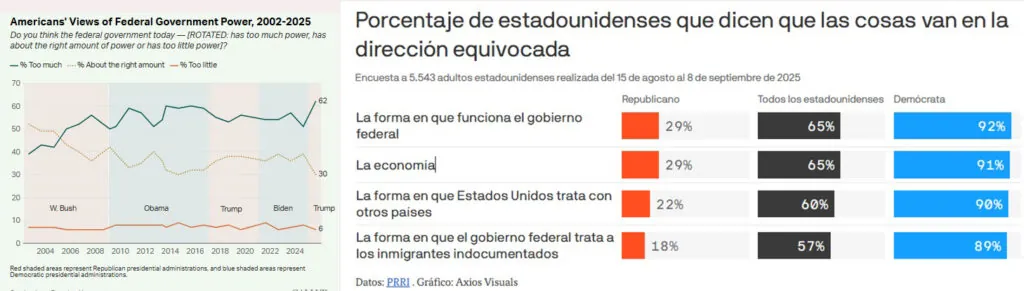 El 62% de los estadounidenses cree que el gobierno federal tiene demasiado poder