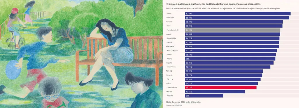 Corea del Sur tiene la tasa de fertilidad más baja del mundo. Se proyecta (con optimismo) que su población se reducirá en más de dos tercios en los próximos 100 años. Si las tasas de fertilidad actuales persisten, cada cien surcoreanos actuales tendrán solo seis bisnietos. Este desastre tiene orígenes que resultarán inquietantemente familiares para los lectores occidentales, como la difícil disyuntiva entre la carrera profesional y la maternidad, una carrera armamentística de crianza intensiva, la ruptura de las relaciones entre hombres y mujeres y la caída de las tasas de matrimonio. En todos estos casos, lo que distingue a Corea del Sur es que estos factores se presentan de forma particularmente extrema. El único factor con pocos paralelismos en las sociedades occidentales es el legado de las exitosas campañas antinatalistas del gobierno surcoreano en décadas anteriores…