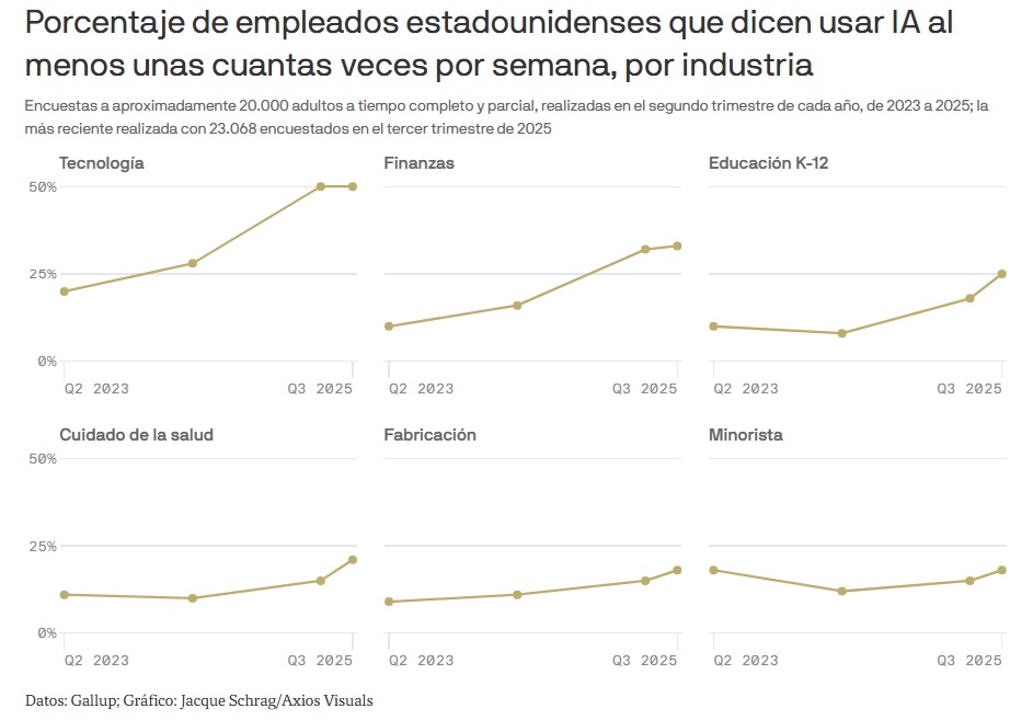 Los trabajos en los que los estadounidenses utilizan más la IA