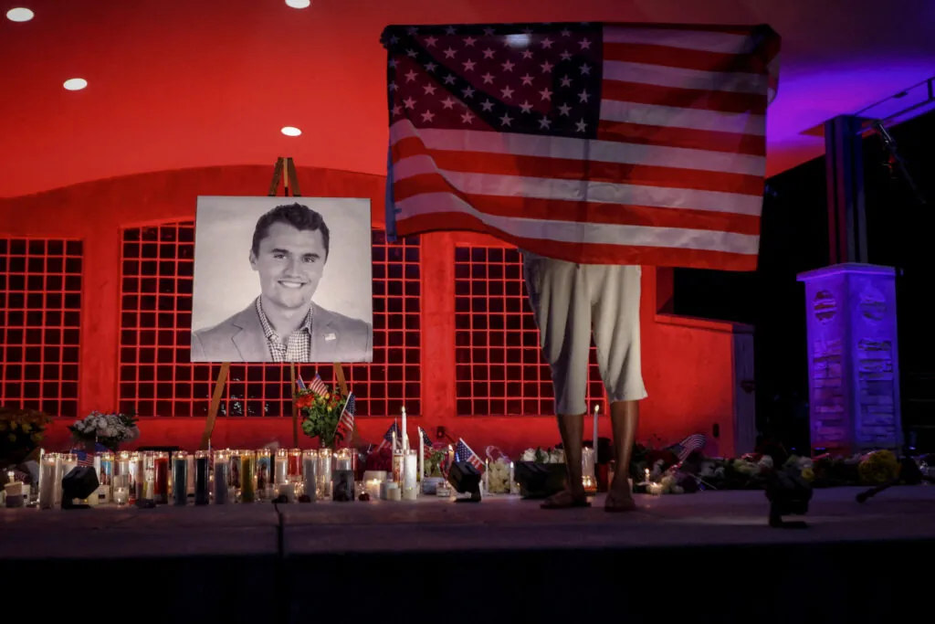 Probablemente, el asesinato más sonado en Estados Unidos en todo el año. El 10 de diciembre, el activista de ultraderecha Charlie Kirk, fiel defensor de Donald Trump y sus políticas, fue asesinado de un disparo mientras daba una charla en la Universidad del Valle de Utah. El suceso puso de relieve, todavía más, la polarización política en el país americano. En la imagen, una persona sostiene una bandera estadounidense durante una vigilia en el Orem City Center Park, al día siguiente del asesinato.