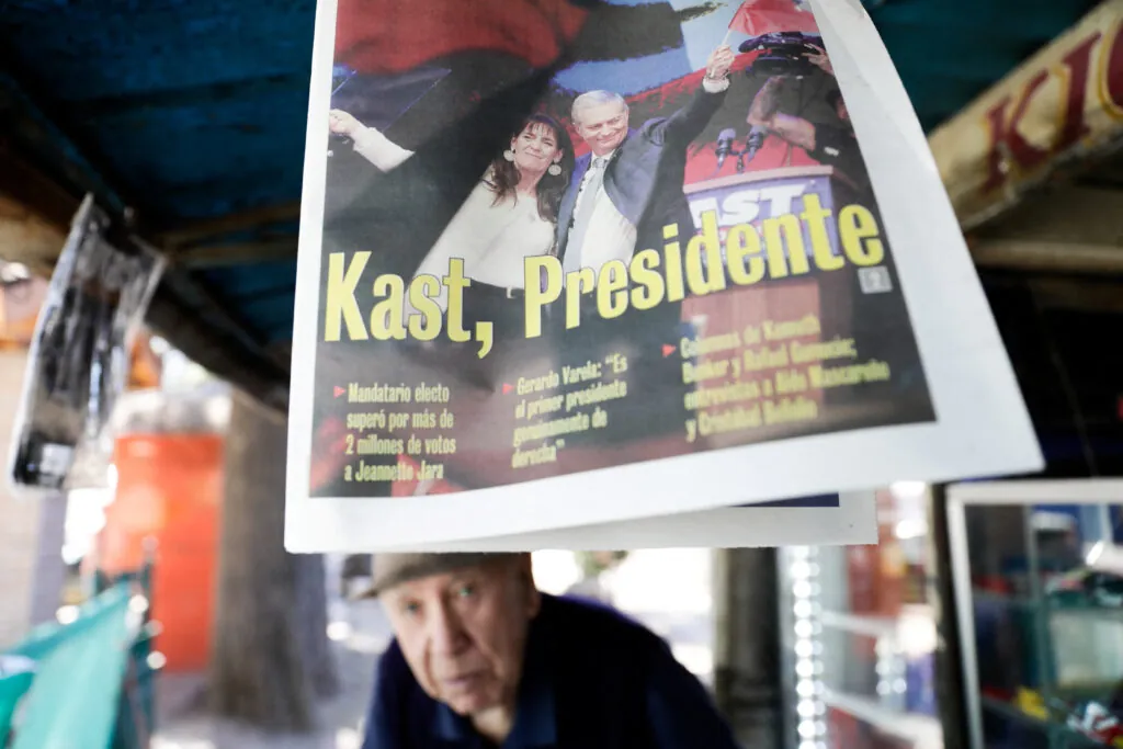 Cambio de ciclo político en Chile. Por primera vez desde el fin de la dictadura de Pinochet, un candidato de la ultraderecha se ha hecho con el poder en el país americano. José Antonio Kast es abiertamente ultraconservador y pinochetista, lo que le alinea políticamente con otros líderes americanos como Javier Milei (Argentina), Nayib Bukele (El Salvador) o Donald Trump (Estados Unidos). En la imagen, un ciudadano chileno ante una copia del periódico Las Últimas Noticias anunciando la victoria de Kast, en Santiago de Chile.