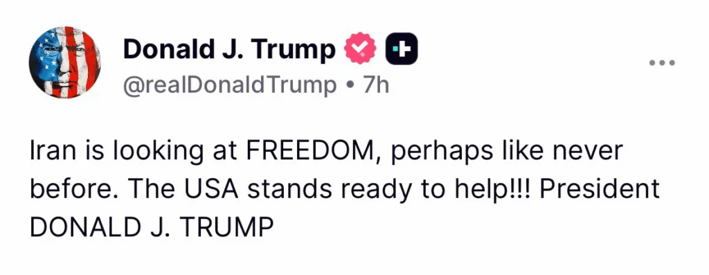 Pahlavi quiso subrayar también el respaldo exterior a las protestas. «Sabed que no estáis solos. Vuestros compatriotas en todo el mundo están amplificando vuestra voz, y pronto veréis imágenes de su presencia masiva y extendida», afirmó. Y añadió: «El mundo hoy está con vuestra revolución nacional y admira vuestro coraje». En ese contexto, destacó de forma explícita el papel de Estados Unidos: «En particular, el presidente Trump, como líder del mundo libre, ha observado de cerca vuestra valentía indescriptible y ha declarado que está dispuesto a ayudaros».