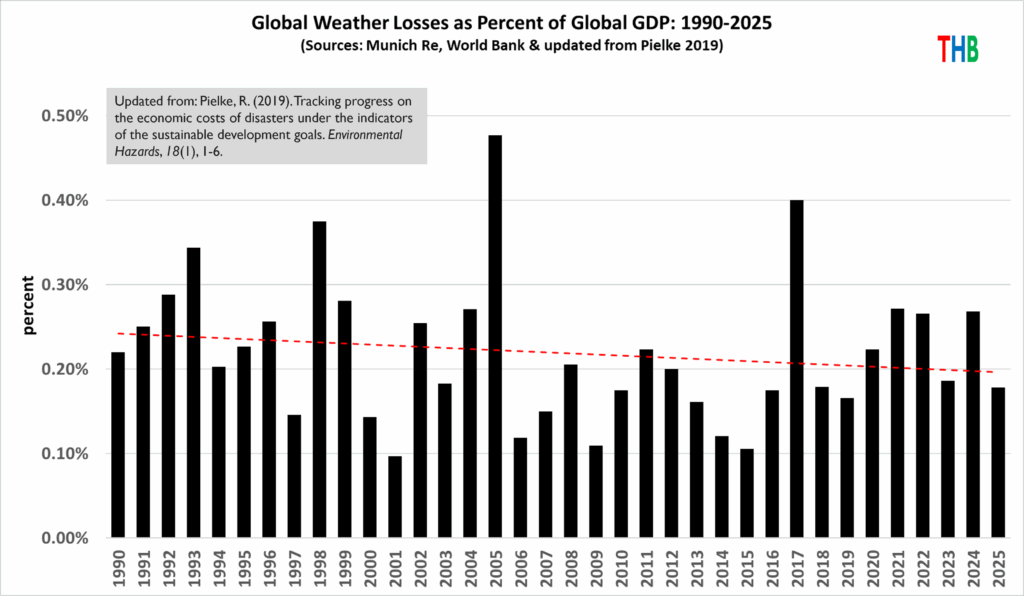 Pérdidas por catástrofes climáticas globales de 1990 a 2025
