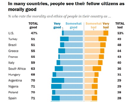 EEUU, el único país donde la mayoría considera a sus conciudadanos ‘moralmente malos’