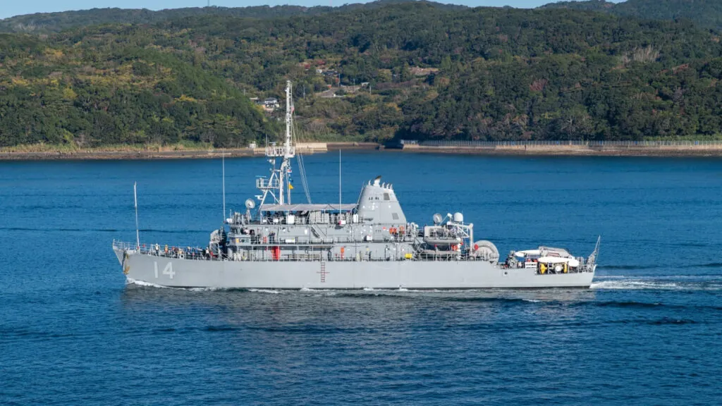 Los buques estadounidenses de la clase Avenger representan la respuesta más aplicable a este problema. Construidos con madera, fibra de vidrio y acero no magnético, su firma metálica es inferior a la de muchos pesqueros comerciales, lo que los hace invisibles para las minas de influencia que pretenden barrer. Su sonar de alta resolución genera imágenes del lecho oceánico que los operadores analizan para encontrar anomalías: formas redondeadas, cables, objetos que no deberían estar ahí. Avanzan a cuatro nudos (siete kilómetros por hora), a un ritmo lento y metódico.