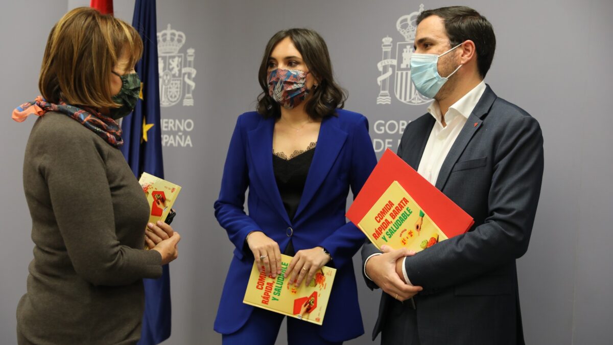 El ministro de Consumo, Alberto Garzón, ha presentado este miércoles el recetario ‘Comida rápida, barata y saludable‘, de la nutricionista Marián García (Boticaria García), editado por el Ministerio. Garzón se ha mostrado «esperanzado» en conseguir «cambiar los hábitos de consumo» de la población española, a pesar de la «polémica de la carne» porque considera que «la inmensa mayoría de la población está dispuesta» a seguir las recomendaciones de los divulgadores.