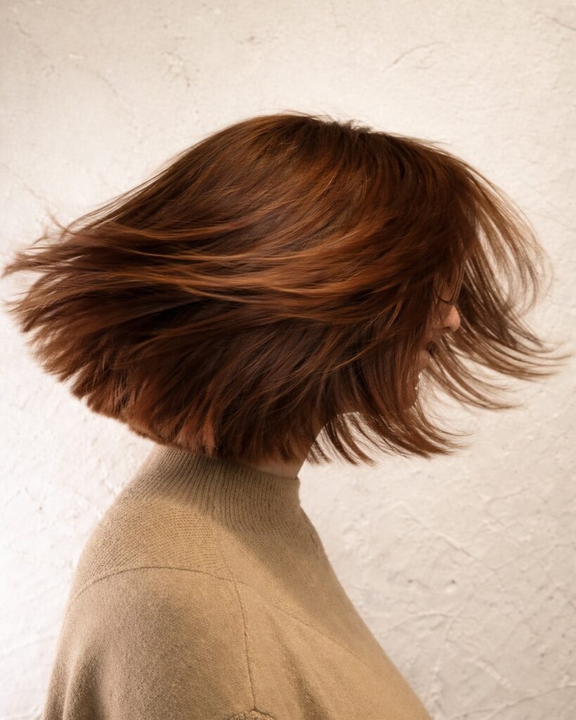 Una de las grandes ventajas del bob mariposa es su versatilidad. Gracias a las capas estratégicas, se adapta a cualquier tipo de cabello y forma de rostro. Puede llevarse con flequillo para acentuar el volumen, o sin él para un acabado más despeinado y natural. Incluso a medida que el cabello crece, se mantiene el estilo, permitiendo pequeños ajustes que prolongan su vida útil sin necesidad de cambios radicales.