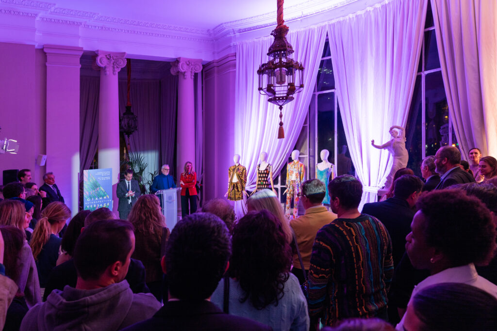La exposición, presentada en el Palacio Amboage de la Embajada de Italia en Madrid, es un homenaje al legado del diseñador, reuniendo más de 500 piezas originales que destacan la genialidad creativa de Versace.