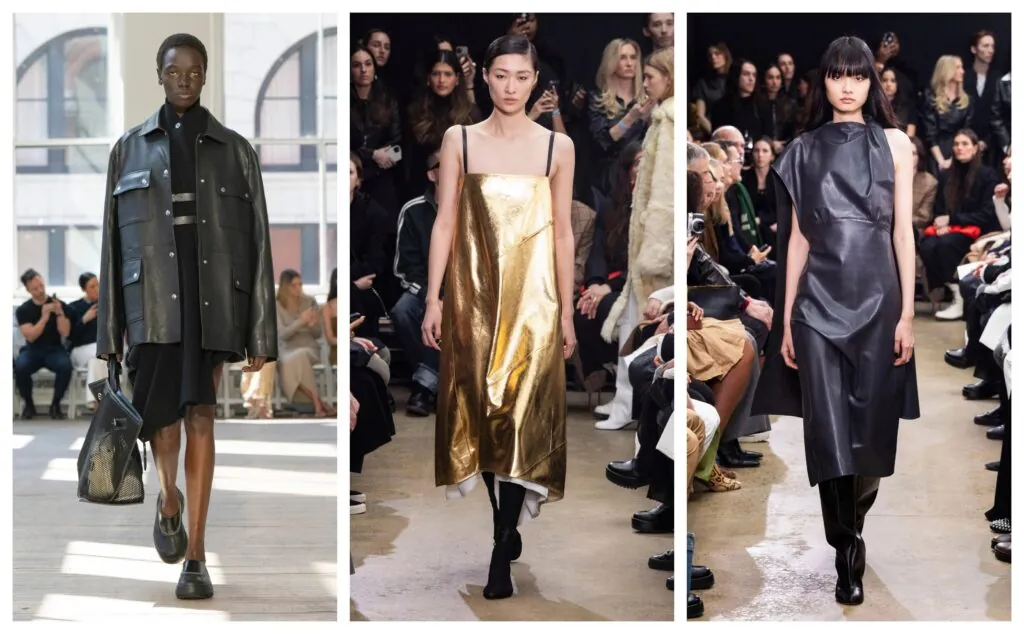 La maestría en el trabajo del cuero es uno de los pilares de su estética minimalista y refinada. Utilizan este material de manera excepcional, llevándolo a la moda femenina con una sofisticación que destaca por su limpieza y pulcritud. A través de cortes precisos y acabados impecables, logran que el cuero se convierta en una extensión natural de la silueta, sin ser pesado ni recargado. Su enfoque, aunque anclado en las raíces de la moda neoyorquina, busca crear prendas funcionales, pero con una elegancia sutil que las hace perfectas para la mujer contemporánea. Cada pieza de cuero se transforma en un statement de estilo, combinando la dureza del material con la suavidad de las líneas limpias y una estética perfectamente equilibrada.