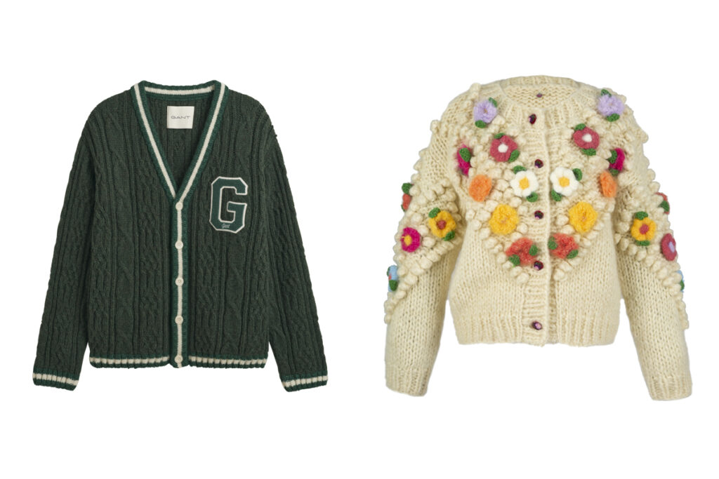También hemos visto como el cárdigan encaja a la perfección con la estética college. El diseño de Gant es un ejemplo perfecto. Como ves, solo tienes que elegir un diseño con un clásico relieve de ochos, un ribete en otro color y, sobre todo, una buena inicial o número en el pecho. Y si eres de las que anhelas el buen tiempo, seguro que la idea de la firma de Celia B es tu favorita. La firma asturiana llena su cárdigan más especial con multitud de flores de punto que nacen desde la misma prenda llenándola de color.