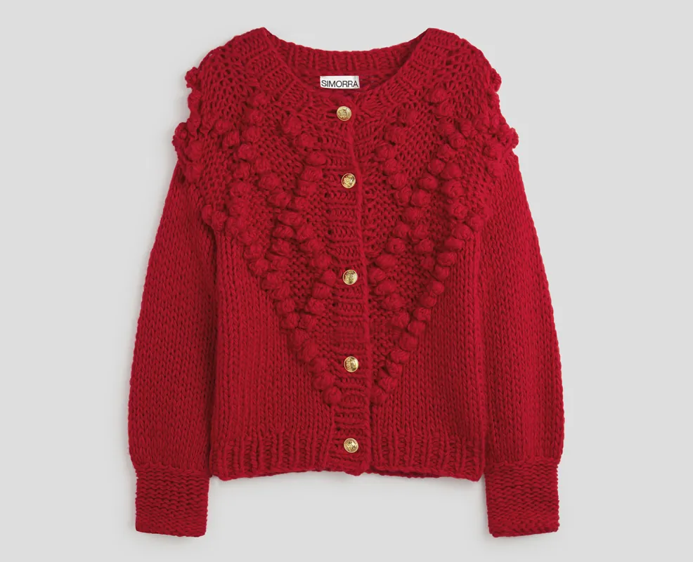 Si te hemos abierto la necesidad de contar con un nuevo cárdigan en el armario, no hay mejor momento que las rebajas para hacerte con un buen diseño a un precio excepcional. Una buena elección sería la propuesta en rojo de la firma Simorra. Se trata de un diseño muy especial con un punto gordo y juego de relieves que es un perfecto ejemplo de pieza que podemos tener de por vida en nuestro vestidor.