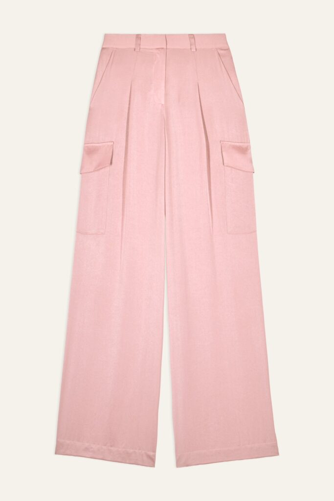 Este pantalón cargo en tono rosa pastel de Ba&sh, combina comodidad y estilo con un aire streetwear femenino. Su diseño incluye dos bolsillos con solapa en los muslos y otros dos con ribetes, aportando funcionalidad sin perder elegancia. Ideal para un look chic y casual, se puede combinar con un crop top para equilibrar su silueta relajada con un toque moderno y estilizado.