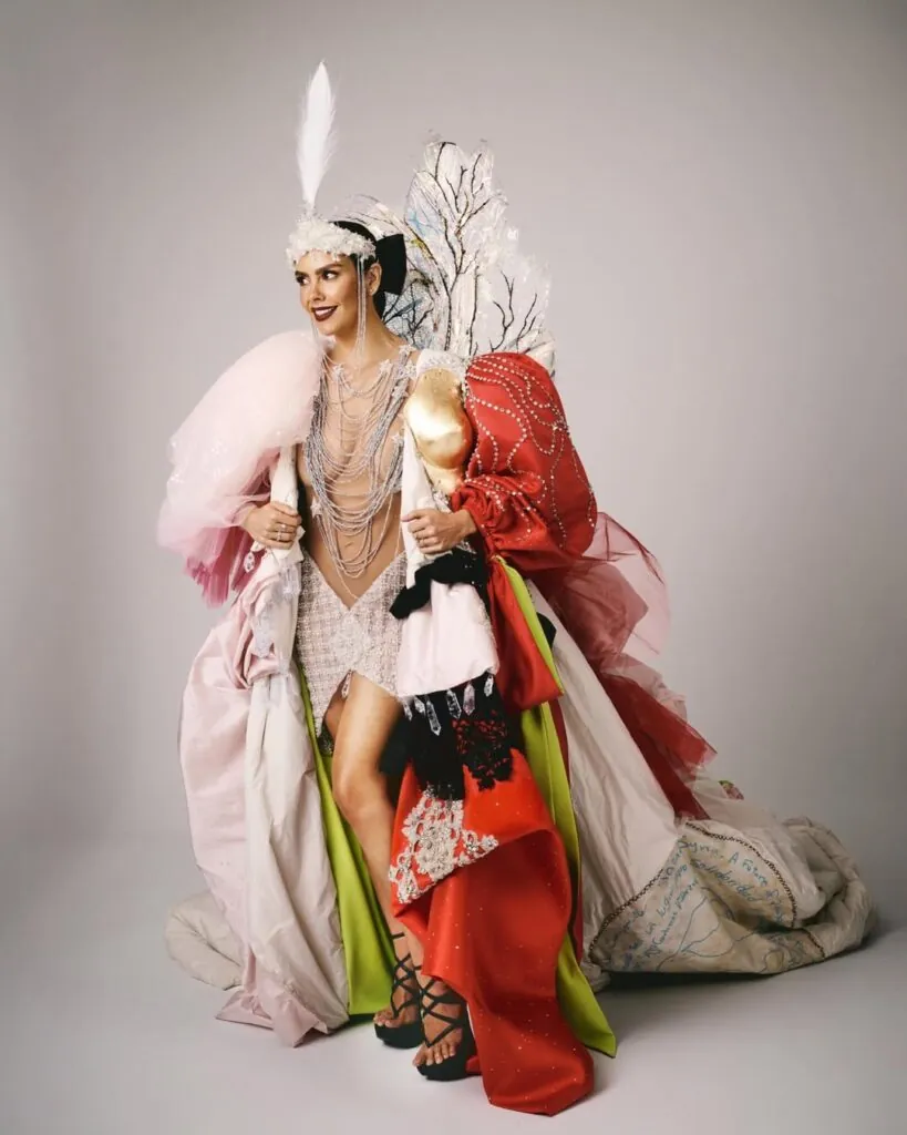 Para sus últimas Campanadas, Cristina Pedroche eligió un diseño de patchwork compuesto por fragmentos de sus once estilismos anteriores. La capa unía tules, encajes, abalorios y mangas recuperadas, creando un archivo textil en movimiento. Un look emotivo y nostálgico, más conceptual que práctico, que polarizó opiniones: audaz y memorable para algunos, excesivo para otros, pero imposible de ignorar en la noche más televisiva del año, cerró nuestro ranking.