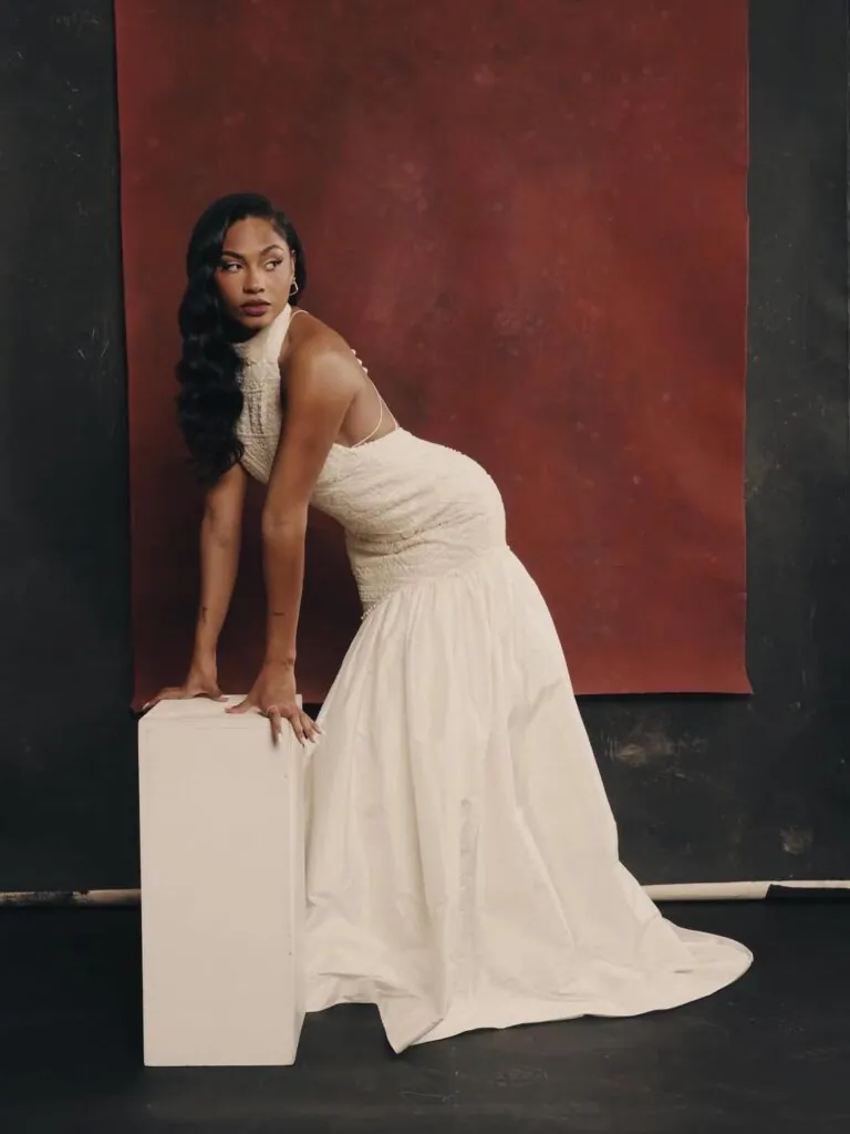 Nia Correia deslumbró con una apuesta segura, un vestido blanco roto de silueta sirena que abrazaba cadera y muslo, con escote halter alto y espalda descubierta, mientras la falda vaporosa caía con ligereza y movimiento, combinando textura superior con un bajo etéreo que flotaba en cada paso; irradiaba elegancia clásica y poderosa, muy femenina, fresca bajo la luz de Tenerife, perfecta para las Campanadas, con joyas doradas discretas y un beauty look impecable que realzaba su presencia frente al mar nocturno, transmitiendo renovación y sofisticación sin necesidad de impacto exagerado.