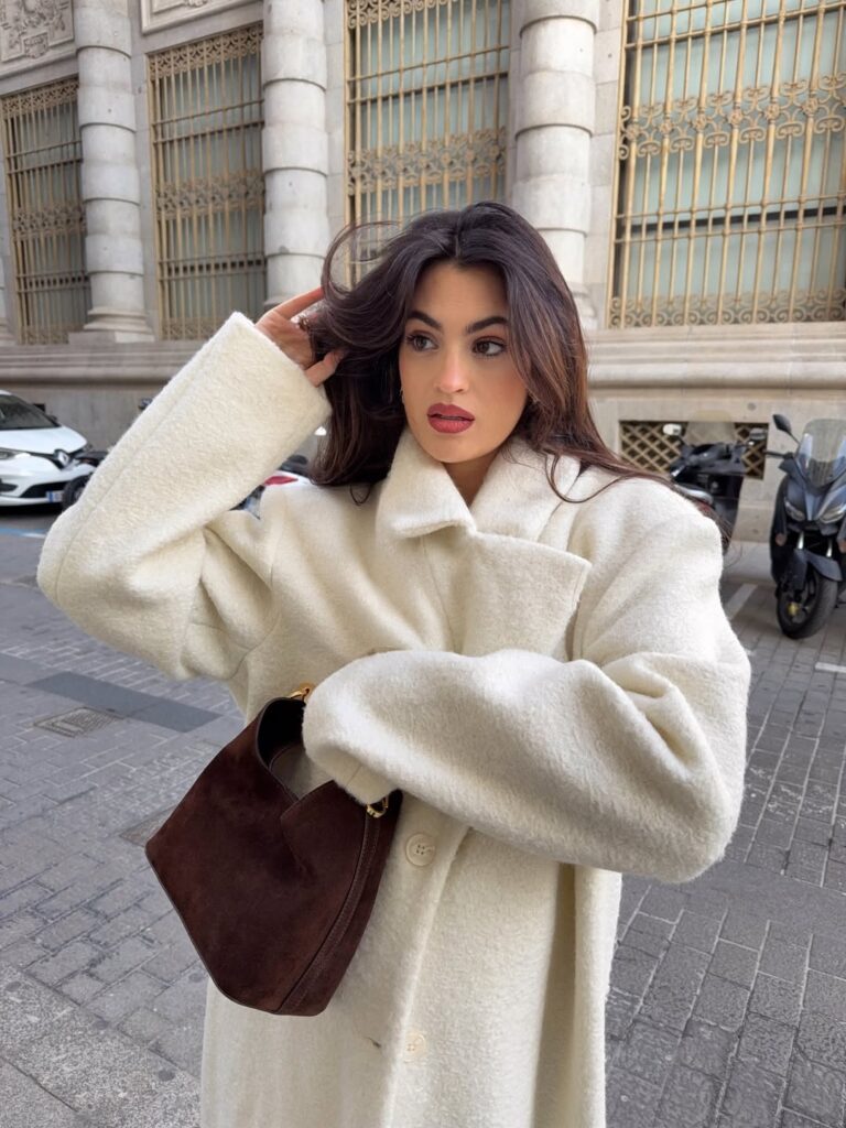 Este abrigo largo en tono piedra de la marca española IPA BRAND es el equilibrio perfecto entre elegancia y diseño atemporal. Su corte recto dibuja una silueta limpia y estilizada, mientras que la longitud aporta presencia y versatilidad, convirtiéndolo en una opción para cualquier ocasión. El cuello mandarín y las líneas depuradas refuerzan su estética minimalista y moderna, haciendo que se integre con facilidad en cualquier armario. Para combinarlo, lo imagino con un jersey de punto fino en tonos neutros, pantalones de lana o jeans oscuros, botas altas de cuero y un bolso estructurado. También puede funcionar sobre un vestido midi y botines para un look más femenino y elegante.