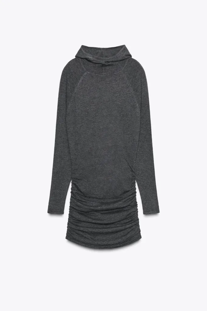 Zara no deja de sorprender al trasladar las tendencias de pasarela al street style. Este vestido, con su aire urbano, es una apuesta atrevida que merece la pena para salir de la zona de confort que muchas aún no nos atrevemos a explorar. Corto, pero de manga larga y con capucha, resulta perfecto para estos meses de frío, combinado con buenos leotardos y mocasines para darle todavía más estilo al look, y una chaqueta vaquera por encima para rematar. Y lo mejor, está disponible por solo 11,18 euros.