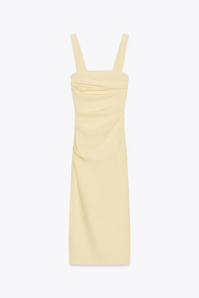 Por último, esta versión de vestido midi entallado, con escote recto y tirantes gruesos, destaca por los pliegues laterales y su versatilidad. Por solo 10,38 euros, es una opción perfecta tanto para cenas de negocios como para noches especiales. Aunque el color es más propio del verano, se puede adaptar a los meses de frío combinándolo con chaquetas en tonos más sobrios, que aporten contraste y mantengan el look elegante y actual.