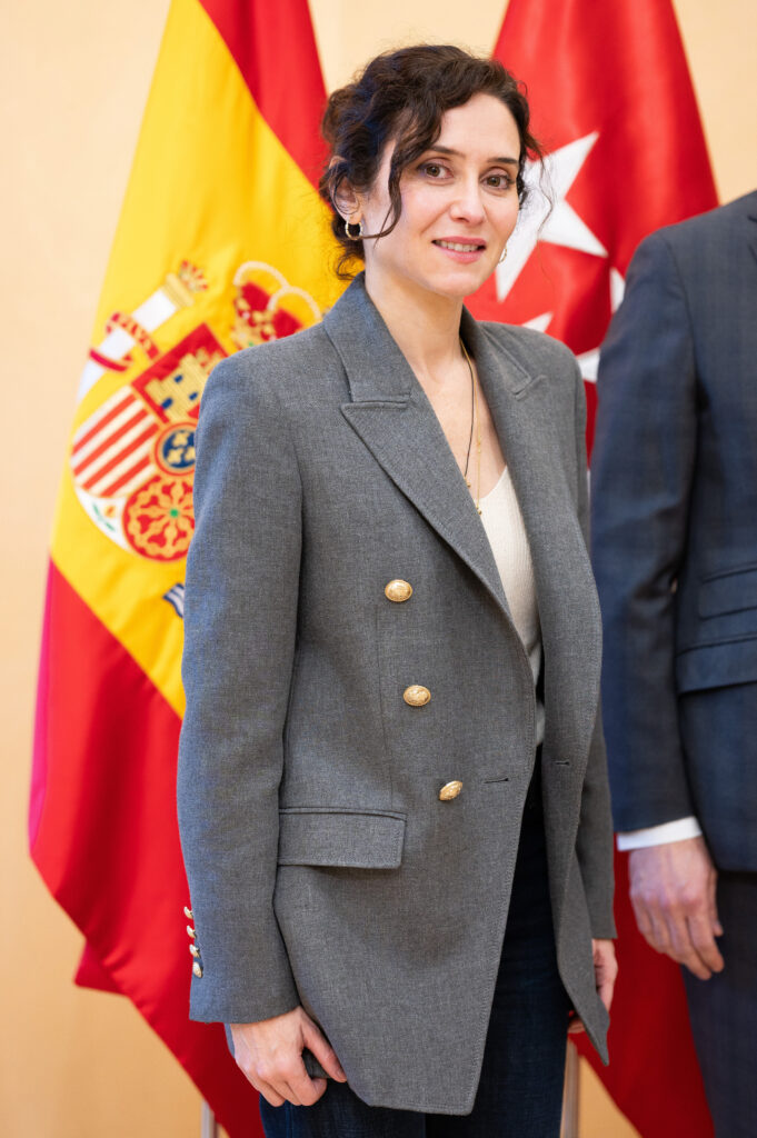 Este tipo de prenda conecta también con un cambio más amplio en la forma de vestir tras la pandemia. El armario se ha relajado, pero no ha renunciado a la estructura. La blazer se convierte así en la aliada perfecta para elevar unos vaqueros rectos, como los que lleva Ayuso en este caso, o para acompañar pantalones de sastre y camisetas básicas. Es una prenda que no impone edad, pero sí experiencia estilística.