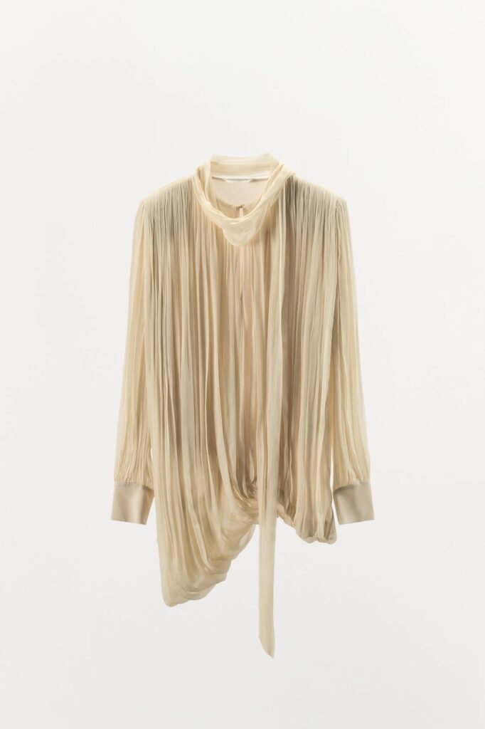 Blusas que destacan por su drapeado, como esta de Zara, encarnan a la perfección un bohemia elegante, perfecta para salidas nocturnas. Su diseño, con bajo asimétrico y hombros terminados en puño, aporta un aire sofisticado y especial, mientras que combinada con pantalones ajustados y tacones altos se transforma en un look de fiesta o cena sin esfuerzo, donde cada detalle habla de estilo y personalidad.