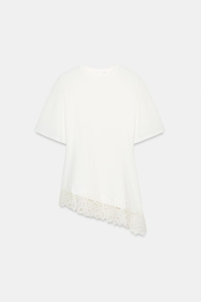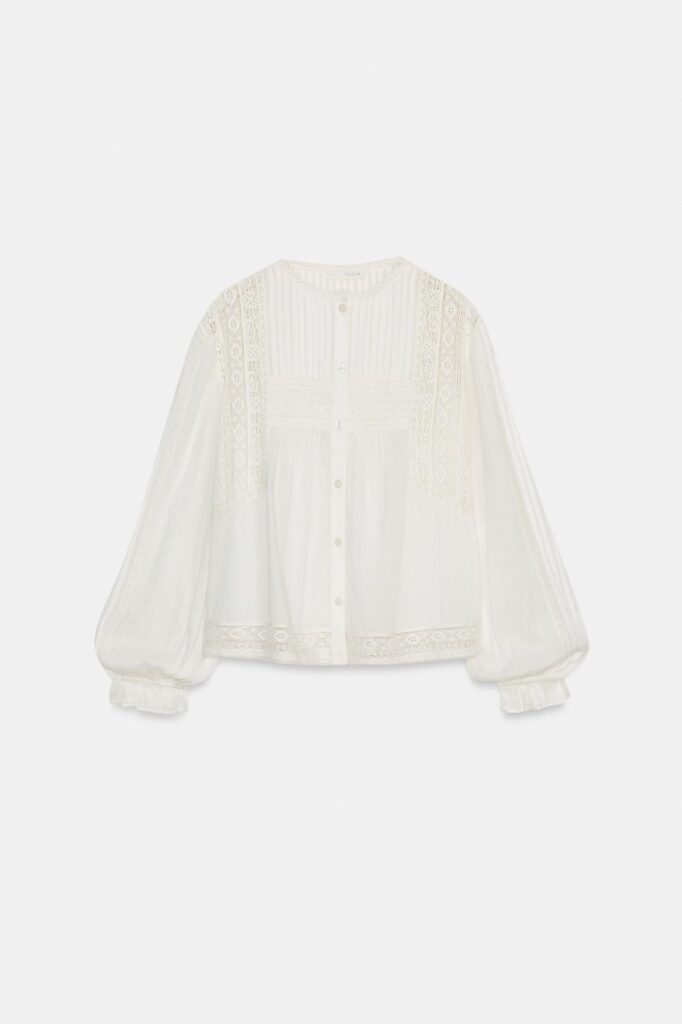 Por último, también se suman a esta selección las camisas blancas clásicas, pero con detalles que marcan la diferencia. En este caso, el bajo asimétrico combinado con delicados bordados de encaje a tono eleva la pieza, confeccionada en algodón, convirtiéndola en una opción perfecta tanto para la oficina como para ocasiones más especiales. Al final, una básica blanca siempre es bienvenida en cualquier armario, pero cuando se le añade un detalle único, se transforma en la prenda imprescindible de la temporada.