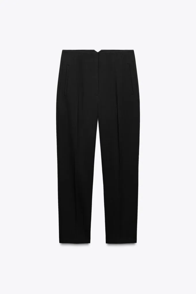 En la parte inferior, Mango propone un pantalón negro tobillero de tiro alto con costuras marcadas en delantero y espalda. Este detalle estructural aporta un acabado más pulido y eleva la prenda más allá del básico de fondo de armario. La clave de estilo está en llevar la camisa por dentro del pantalón. Este gesto sencillo marca la silueta y deja visible el tiro alto, potenciando el efecto estilizador. Además, permite que el azul eléctrico se convierta en el foco absoluto del look, equilibrado por prendas neutras que lo acompañan.