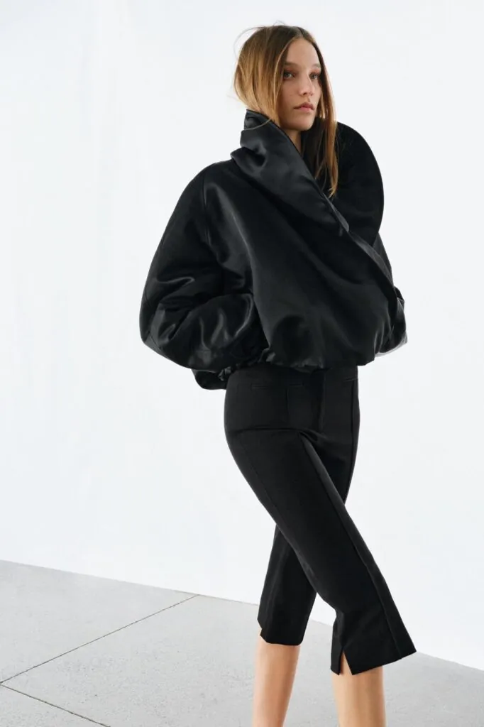 Esta pieza, con acolchado interior, cuello envolvente de solapa y manga larga con frunces y puños, se presenta como la novedad de Zara. Las bombers siempre han sido un básico atemporal, y aunque este año regresan como novedad, la moda suele ser cíclica, recuperando tendencias que años atrás fueron un verdadero boom. Es perfecta para combinar con looks urbanos y casuales, y aunque no esté pensada específicamente para oficina, con un poco de creatividad se pueden crear conjuntos que encajen también en un contexto más formal.