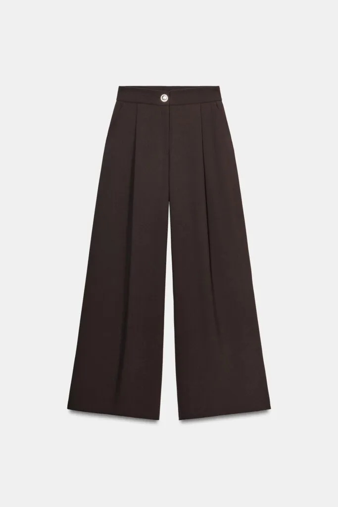 Un palazzo es un básico imprescindible en cualquier fondo de armario, y más si está en color tendencia como el marrón chocolate. Son perfectos para la oficina: combinados con un jersey fino en tonos neutros y accesorios en colores más llamativos, crean un look elegante, creativo y muy fácil de montar utilizando piezas básicas.