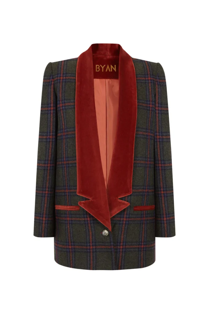 Encima, una blazer estructurada como la opción que hemos elegido de Byan, con base verde y rayas en naranja y azul en contraste, crea un atractivo juego cromático que aporta personalidad al conjunto. Mejor si cuenta con hombros definidos (como esta), ya que este detalle potencia la silueta.