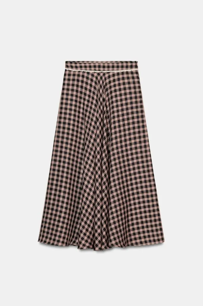 Las faldas midi de tiro alto, con puntilla y bajo evasé en estampado de cuadros, se posicionan como una de las tendencias centrales de esta primavera-verano. La moda es cíclica, y lo que fue tendencia vuelve con fuerza. Combinadas con camisas blancas o en tonos más llamativos, permiten crear looks perfectos para el día a día, frescos y llenos de estilo.
