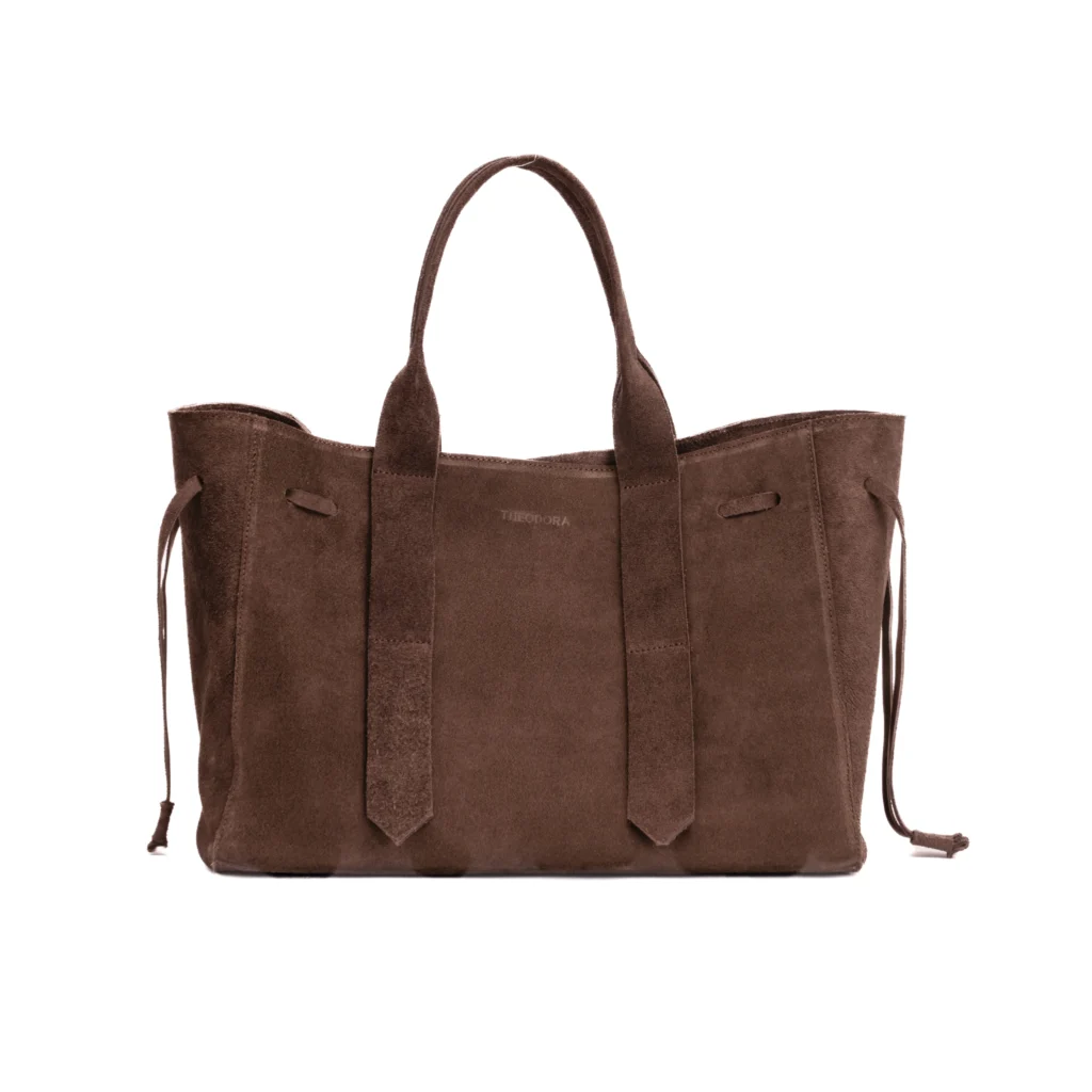 Empezando por lo que más nos gusta: los bolsos. Nuestra elección es esta pieza oversized de Theodora, un modelo todoterreno elaborado 100% en cuero y hecho a mano en un elegante tono marrón, perfecto para llevar todo lo que necesites sin perder estilo ni sofisticación.