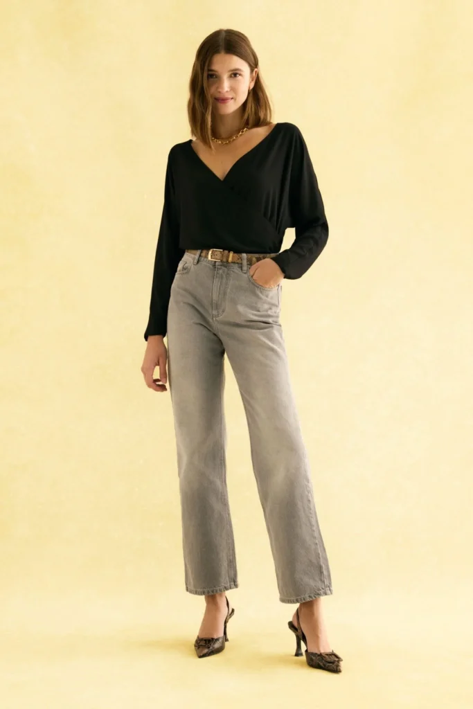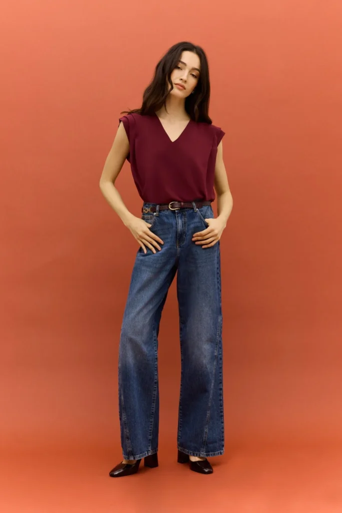 Con blusas, ya sea una opción floral, una camisa blanca impecable o un modelo más ceñido que contraste con el volumen del pantalón, el resultado es impecable. Un vaquero que equilibra tendencia y funcionalidad, perfecto para quienes buscan comodidad sin renunciar a una imagen pulida en la oficina.