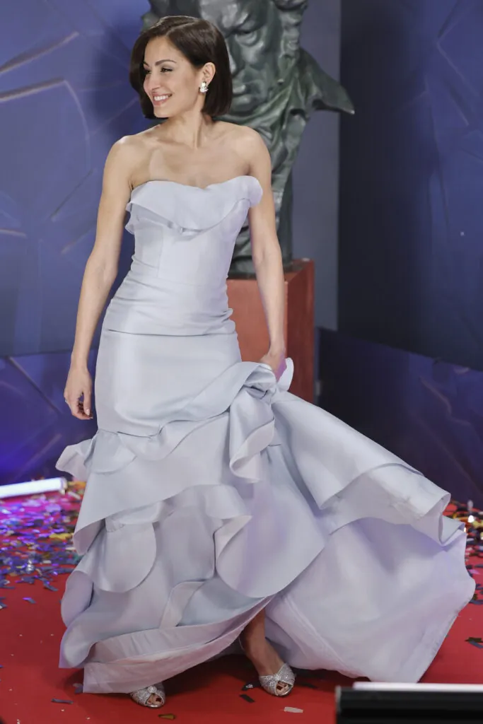 Anna Castillo apostó por un vestido azul de Delpozo, de silueta fluida y lisa, con delicados detalles de pedrería en los tirantes y en el bajo de la falda. La elección resultó sencilla y sobria, transmitiendo elegancia sin excesos. El resultado fue un estilismo refinado, aunque en una noche tan especial como la de los Goya hubiera sido interesante arriesgar un poco más para destacar entre los looks de la alfombra roja.