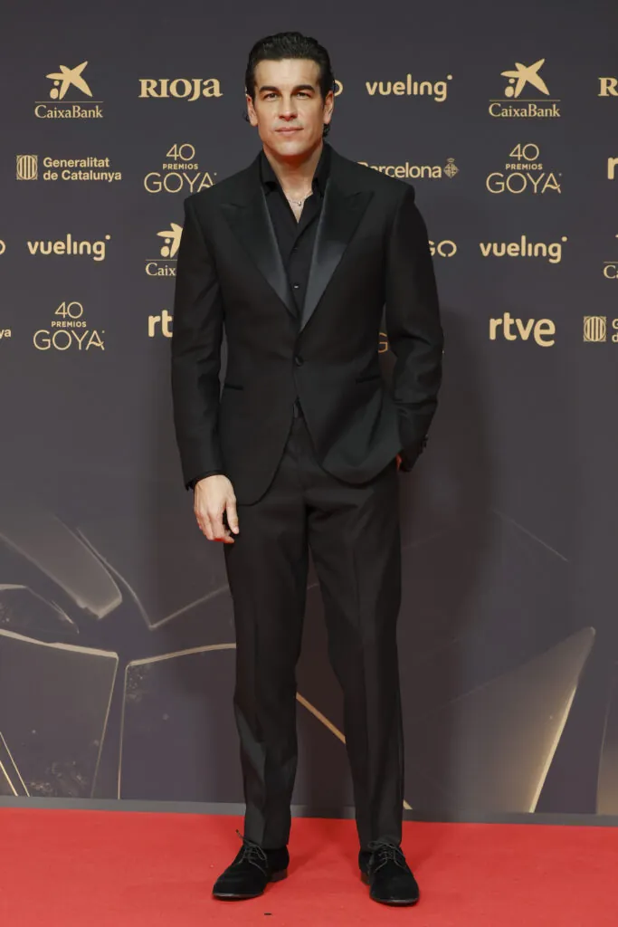 El actor mantuvo la sobriedad como bandera en su paso por la alfombra roja de los Premios Goya 2026, presentándose con un esmoquin negro a medida de la firma Mansolutely, acompañado de zapatos de Christian Louboutin y joyas de Dinh Van, decisión clásica que le situó dentro de los hombres mejor vestidos de la noche.