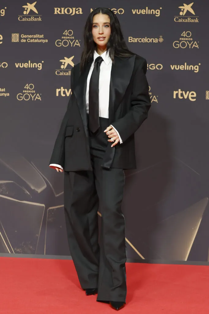 La actriz sorprendió en la alfombra roja de los Premios Goya 2026 con un traje masculino de Mango, con solapas XL, camisa blanca y corbata negra. Su melena suelta con ondas suaves y el maquillaje en tonos nude redondearon un look moderno, elegante y con personalidad, demostrando que Pedraza domina la alfombra roja con un estilo audaz y contemporáneo.