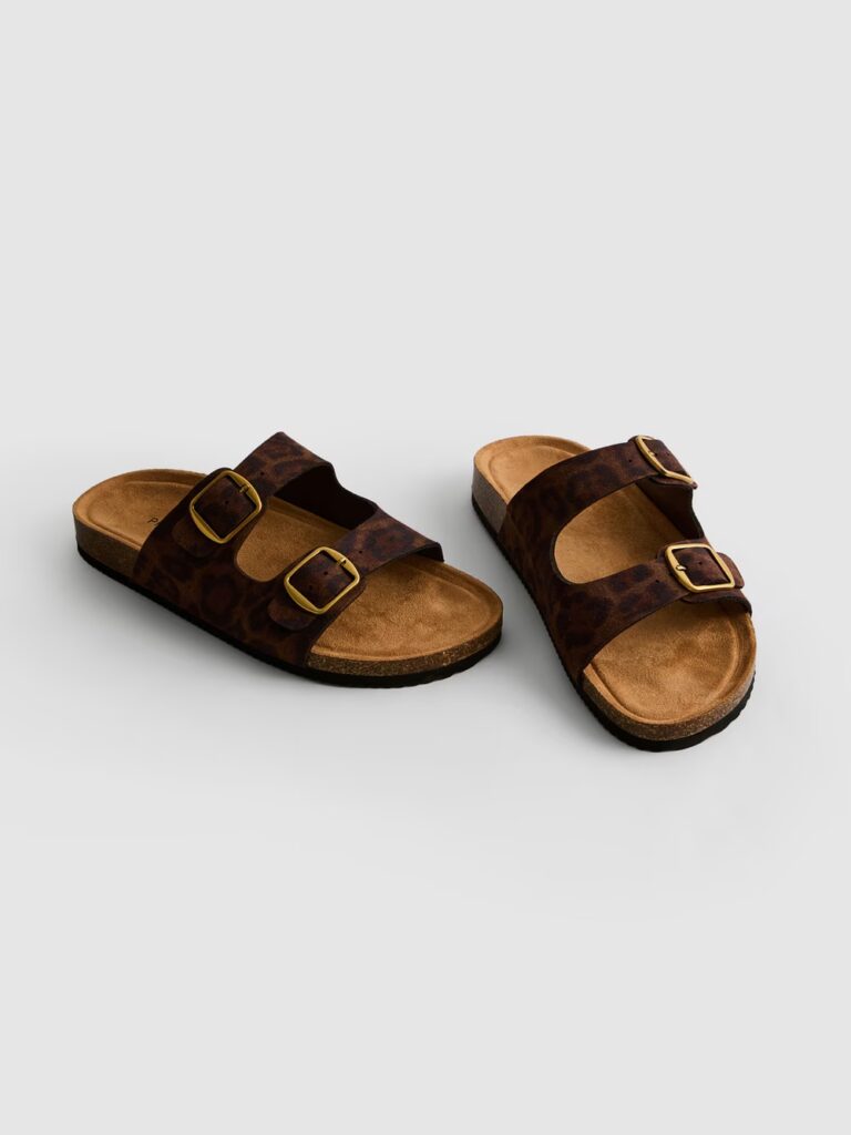 Primark se inclina por la diversión y los estampados llamativos, con sandalias que incorporan tiras dobles, cierre de hebilla y motivos como el estampado de leopardo, sumando personalidad a los conjuntos más informales. También propone opciones delicadas, como las planas destalonadas adornadas con perlas sintéticas, y modelos infantiles con tiras y hebillas que combinan practicidad y estilo desde los primeros pasos.