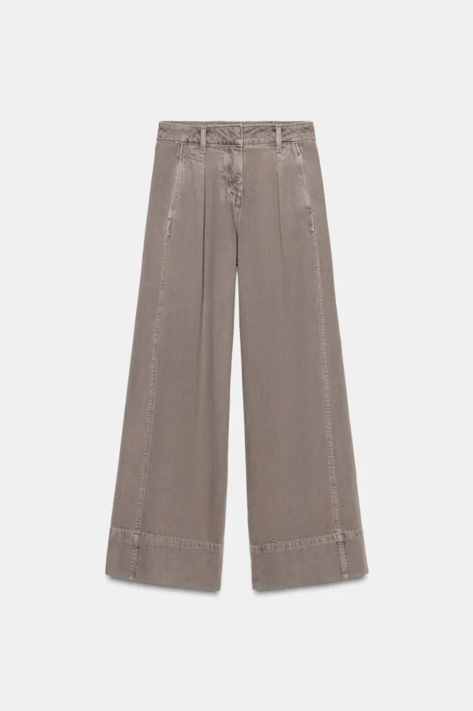 Estos, en cambio, apuestan por el tiro alto y una pernera ancha y extra larga, una silueta que estiliza y aporta un plus de comodidad. Con una simple básica en color neutro y una blazer estructurada se consigue un look de sobresaliente para la oficina, pulido y actual. Si la intención es llevarlos a un terreno más casual, basta con añadir una cazadora vaquera o una bomber para transformar el conjunto y darle un aire mucho más relajado sin perder sofisticación.