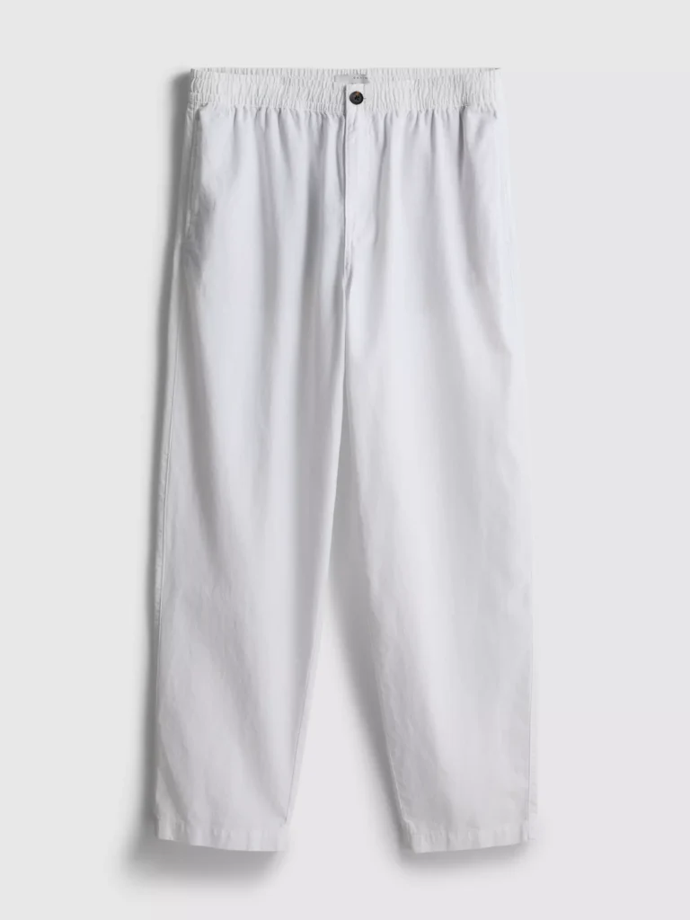 Entre las novedades de Primark para esta temporada aparece un pantalón de corte estructurado que combina funcionalidad y estilo. Confeccionado en mezcla de lino, ofrece la frescura y ligereza del lino, aunque con un poco más de estructura gracias al tejido combinado. El modelo incorpora cinturilla elástica, cierre con cremallera y botón, además de bolsillos laterales, lo que lo hace práctico y cómodo.