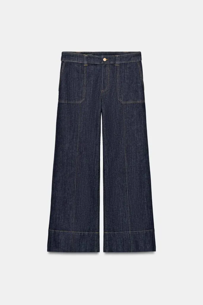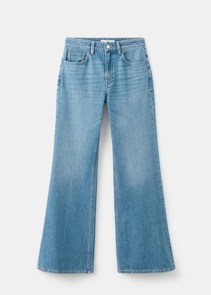 Finalmente, los jeans flare de tiro alto vuelven con fuerza, extendiendo visualmente la pierna y equilibrando proporciones. Estos pantalones, presentes tanto en Zara como en Mango, se consolidan como una alternativa a los cortes rectos, perfectos para completar looks que se sienten tanto contemporáneos como elegantes.