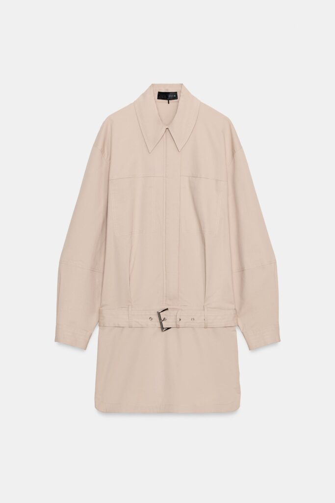Uno de los más innovadores de la temporada es este vestido con cinturón y bolsillos delanteros, que juega con detalles de sastrería. Su cuello con solapa y las aberturas laterales le aportan un aire sofisticado, perfecto para combinar con unas botas negras de cuero, logrando un look contemporáneo y elegante sin esfuerzo.
