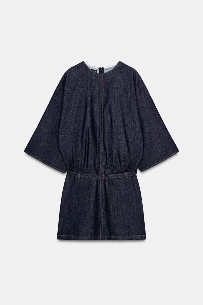 Nunca puede faltar un vestido corto vaquero, y este modelo lo demuestra. Con cuello redondo y mangas anchas y holgadas, se convierte en una pieza todoterreno, capaz de combinar con cualquier bota, sin importar el color, y adaptarse a cualquier plan de la temporada con estilo y comodidad.
