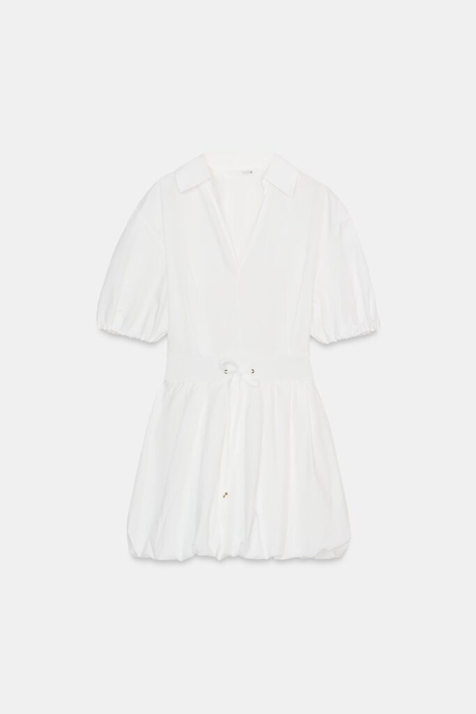 Uno de los que más llama la atención es el vestido en color blanco. Este tono, al igual que el negro, se convierte en un básico que siempre puedes recurrir, fácil de combinar y muy versátil. Perfecto con unas botas medias o altas en ante marrón, crea un look chic inmediato. El diseño con solapa, escote en pico y mangas abullonadas aporta un aire sofisticado y femenino, ideal para cualquier plan de primavera.