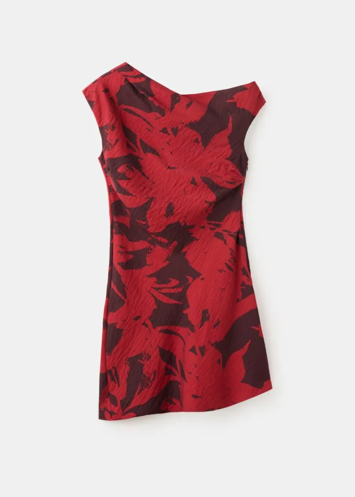 Un diseño corto y entallado, sin ser excesivamente fruncido, con un estampado floral y cuello barco, perfecto para una cena especial durante las vacaciones de Semana Santa. La combinación ideal es con unas botas negras, que aportan estilo y sofisticación al conjunto.