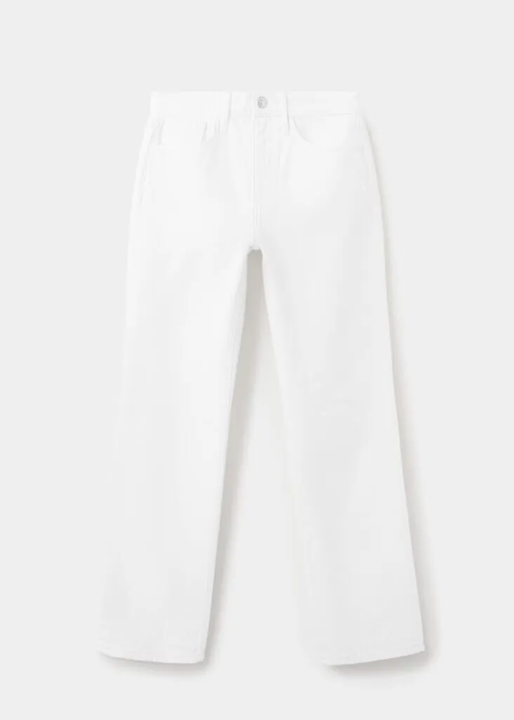 Tejido de algodón estilo denim con textura auténtica de vaquero, de corte recto y tiro alto que alarga la silueta y aporta un aire sofisticado. En color blanco puro, se convierte en la base perfecta para combinar con blusas de estampados llamativos o con tops en tonos neutros, logrando desde un look vibrante y contemporáneo hasta un estilo minimalista y elegante. Su versatilidad lo hace ideal para transitar del día a la noche, mientras que su corte clásico asegura comodidad y un acabado pulido que nunca pasa de moda.
