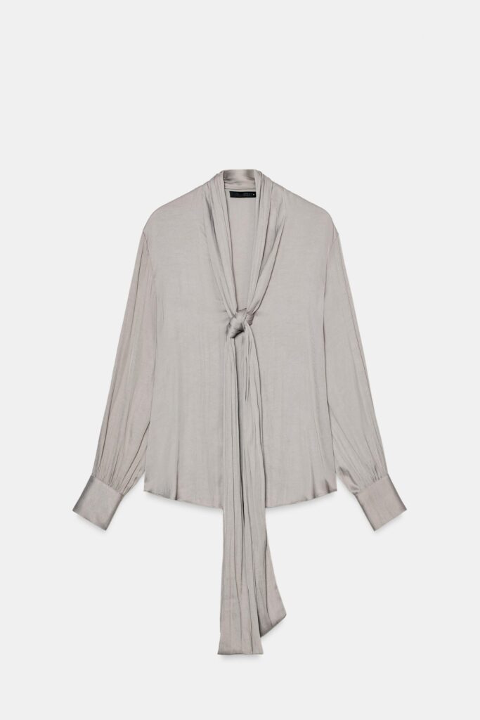 Zara apuesta por una blusa confeccionada en hilatura de cupro, que aporta un tacto suave y caída elegante, perfecta para elevar cualquier look de invitada. El cuello redondo con delicadas lazadas en el mismo tejido suma un detalle femenino y romántico, mientras que las mangas largas rematadas en puño y el bajo redondeado ofrecen un acabado pulido y versátil. Una pieza sofisticada que combina con faldas o pantalones para crear estilismos primaverales llenos de estilo y personalidad.