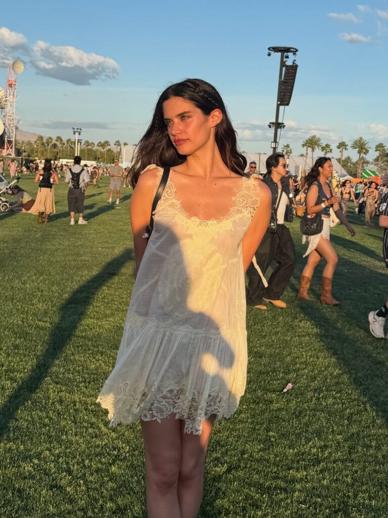 La exmodelo de Victoria’s Secret, Sara Sampaio, ha apostado por un vestido lencero con transparencias en el color tendencia de la temporada, el blanco. Una propuesta ideal para ocasiones especiales como Coachella, combinada con las clásicas trenzas en el cabello para reforzar ese aire boho chic tan característico del festival.