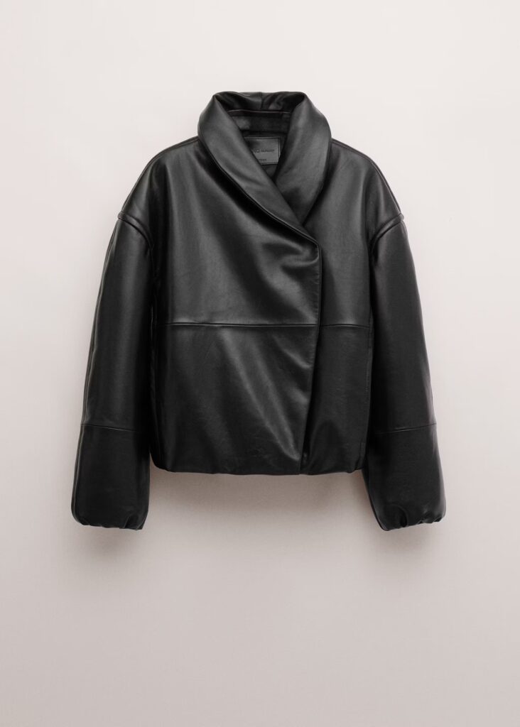 Desde THE OBJECTIVE hemos realizado una búsqueda y la hemos encontrado en Mango, una propuesta que destaca por su acabado en 100% piel de ovino, concretamente piel de napa, con silueta estilo bomber. El diseño apuesta por un corte oversize, cuello alto envolvente y manga larga con puños ajustables, consolidándose como una prenda clave dentro de las tendencias de la temporada.