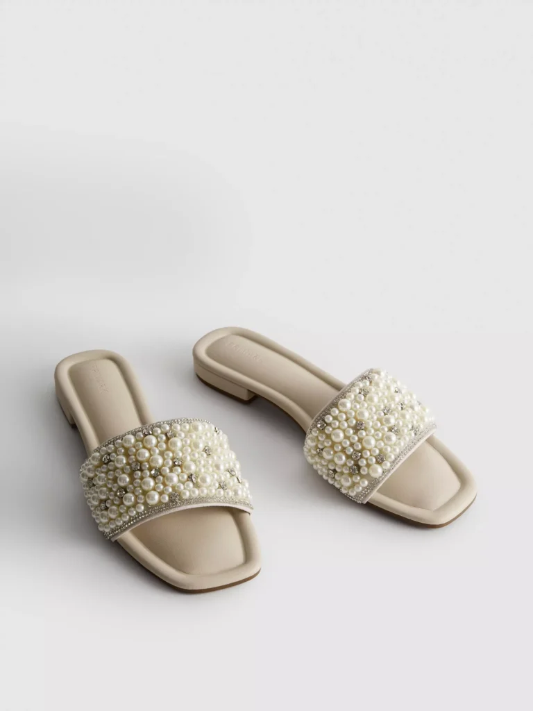 Estas sandalias planas destalonadas de Primark con detalle de perlas sintéticas se posicionan como una de las piezas más llamativas de la colección, capaces de convertirse por sí solas en el foco principal del estilismo. Su diseño aporta un matiz ornamental que eleva cualquier conjunto sin necesidad de excesos.