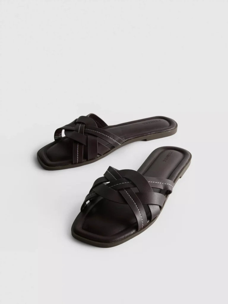 Primark, por su parte, propone unas sandalias planas destalonadas con diseño de efecto piel sintética trenzada en color marrón chocolate, una apuesta de estética minimalista que se alinea con la tendencia de básicos elevados. Se trata de un calzado versátil que funciona tanto con la clásica camisa blanca como con cualquier otro estilismo del armario diario, reforzando esa idea de fondo de armario funcional que domina la temporada.