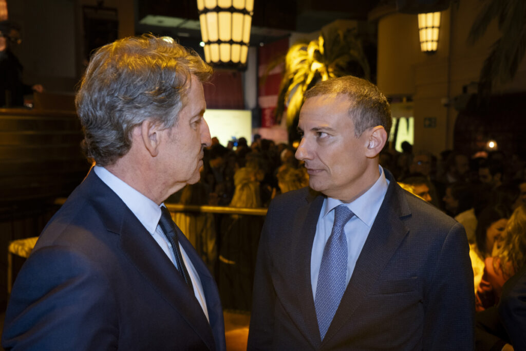 Con los discursos ya concluidos, la celebración tomó ritmo propio. El salón principal mantuvo un flujo constante de invitados que iban y venían entre la barra, la zona central y la planta superior del club Giselle, donde algunos aprovechaban para conversar con más calma. Las fotografías en el photocall se sucedían, y los saludos formales se alternaban con encuentros espontáneos entre perfiles de procedencias muy distintas. La estética del espacio —lámparas verticales, palmeras interiores, iluminación cálida— reforzaba la sensación de una noche cuidada en la que la cabecera buscó celebrar su trayectoria sin perder sobriedad.